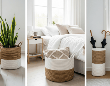 Discover clean lines, natural tones, and timeless textures. Find the perfect handcrafted jute and cotton baskets for stylish, organized living.